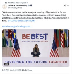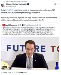 >>32026 OoTFL (TwiX) Only @FLOTUS could bring together this unprecedented group of 45 nations and 28 pioneering technology companies.