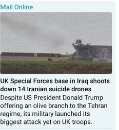 >>32038 SUTB (T.me) British Special Forces base in Iraq, shoots down 14 Iranian suicide drones overnight, in the biggest attack yet on UK troops.