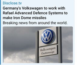 >>32086 D.tv (T.me) JUST IN - Germany's Volkswagen will reach an agreement with the Israeli "Iron Dome" manufacturer to switch from the automotive business to the missile defense business.