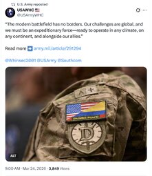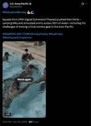>>32027 USArmy (TwiX) “The modern battlefield has no borders. Our challenges are global, and we must be an expeditionary force—ready to operate in any climate, on any continent, and alongside our allies.”