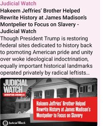 Judicial Watch (T.me) NEW: Though President Trump is restoring federal sites dedicated to history back to promoting American pride and unity over woke ideological indoctrination, equally important historical landmarks operated privately by radical leftists continue to alter U.S history with critical race narratives that downplay the significant contributions of the nation’s founders. READ: http://jwatch.us/2MbA8w