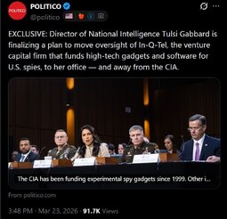 >>32049 CR (T.me) The Office of the Director of National Intelligence is finalizing a plan to become the primary federal steward of a CIA-backed venture capital firm that funds high-tech gadgets and software for U.S. spies, according to six people with knowledge of the effort.