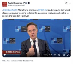 >>31997 TET (T.me) Rutte praised U.S. President Donald Trump for his efforts to take out Tehran’s military capabilities.