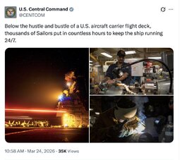 >>32024 USCentComm (TwiX) Below the hustle and bustle of a U.S. aircraft carrier flight deck, thousands of Sailors put in countless hours to keep the ship running 24/7.