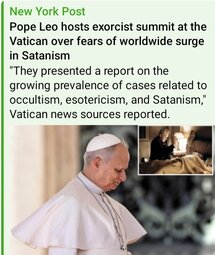 >>32074 FTW (T.me) Pope Leo hosts exorcist summit at the Vatican over fears of worldwide surge in Satanism