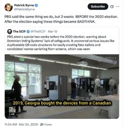 >>32020 PatrickByrne (TwiX) PBS said the same thing we do, but 2 weeks BEFORE the 2020 election. After the election saying these things became BADTHINK.