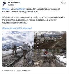 >>32021 USMC (TwiX) #Marines with @2dMarDiv take part in an acclimation hike during Mountain Warfare Training Exercise 2-26.