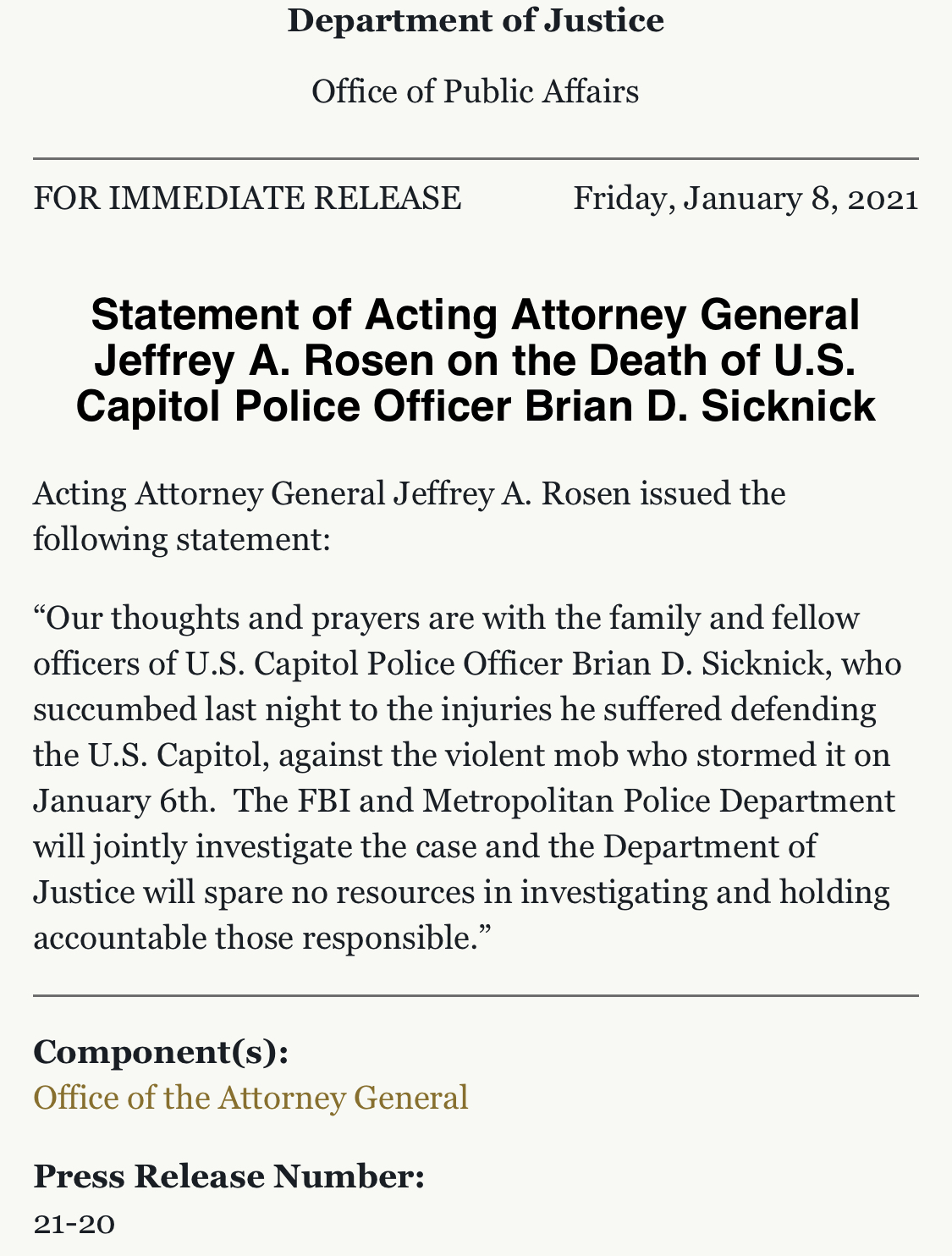 >>12398831 WHITE HOUSE: "The President and the entire Administration extend our prayers to Capitol Police Officer Brian Sicknick’s family as we all grieve the loss of this American hero."