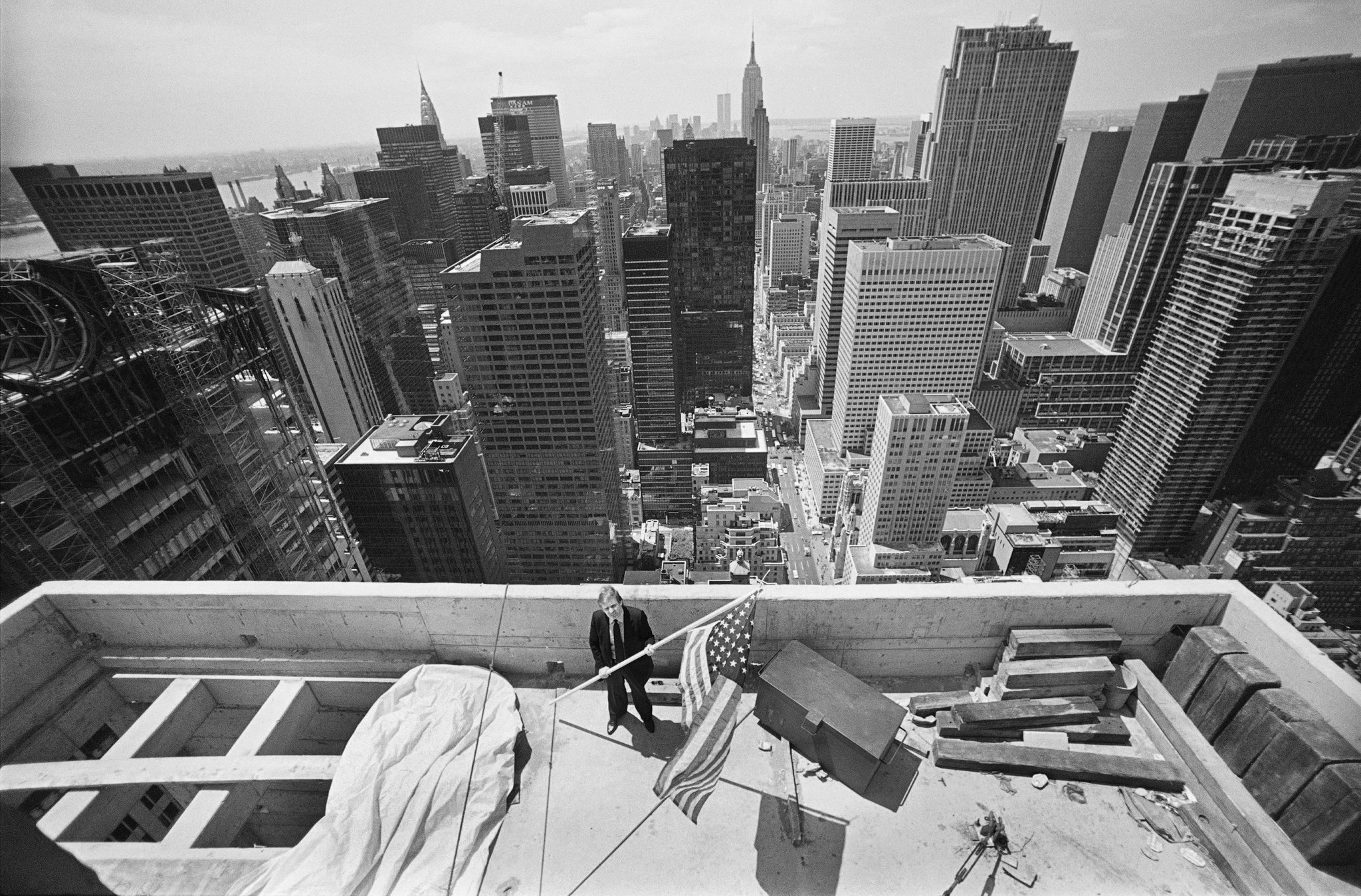 Donald J. Trump atop Trump Tower ahead of the building’s “topping-off” ceremony on July 2, 1982.