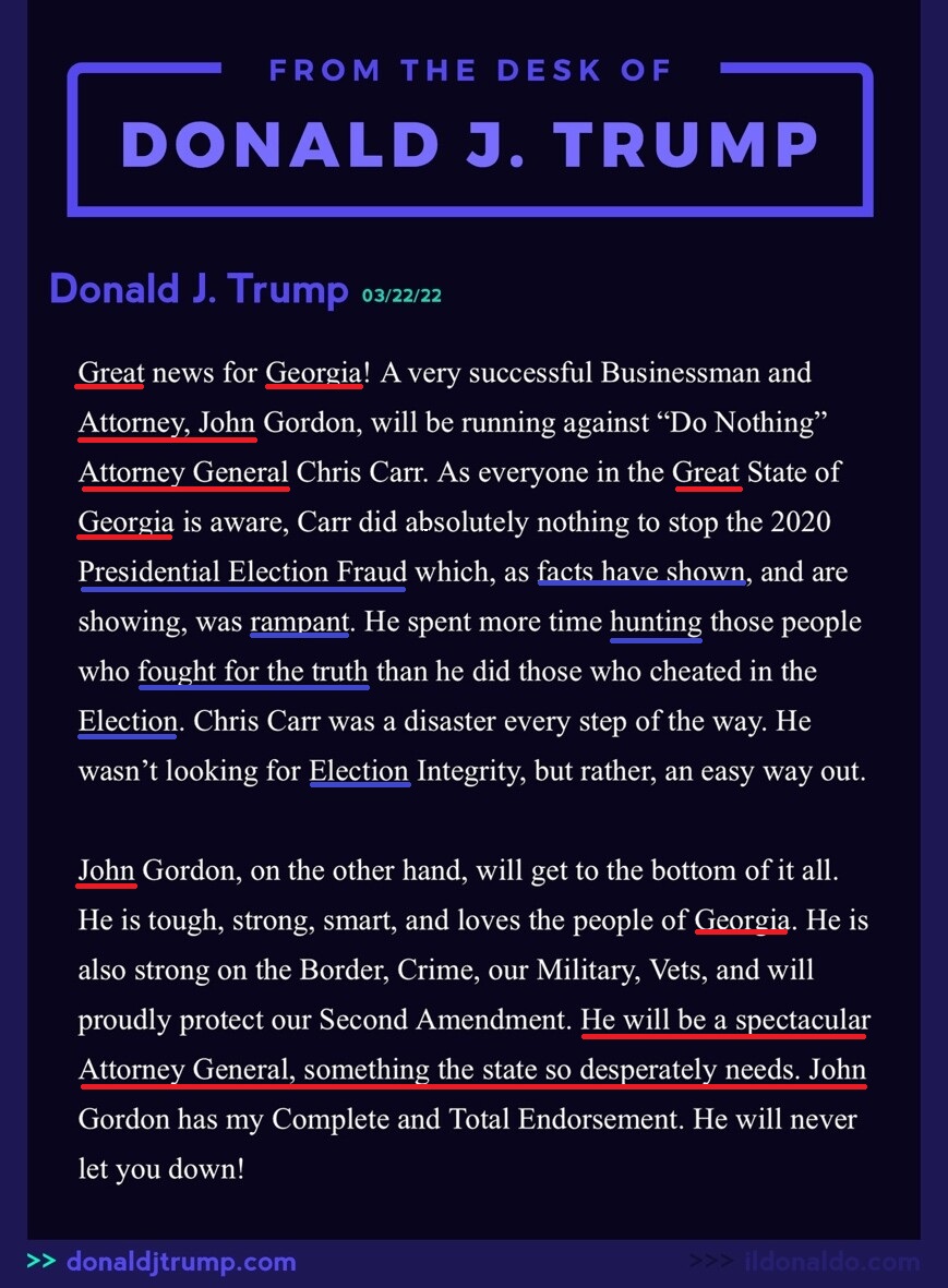 NOTABLES ARE NOT ENDORSEMENTS