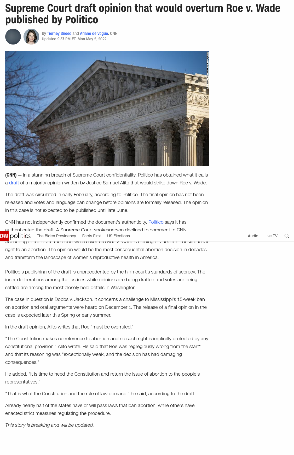 🚨(CNN) — Roberts does NOT want to completely overturn Roe v Wade, meaning he apparently would be dissenting from Alito's draft opinion, likely w the court's 3 liberals, sources tell CNN.