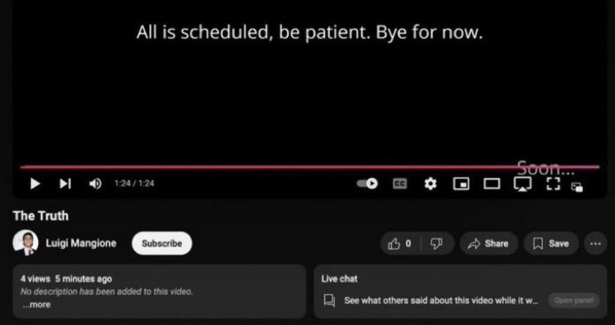 >>22139243 Luigi Mangione has been charged with the murder of UnitedHealthcare CEO Brian Thompson