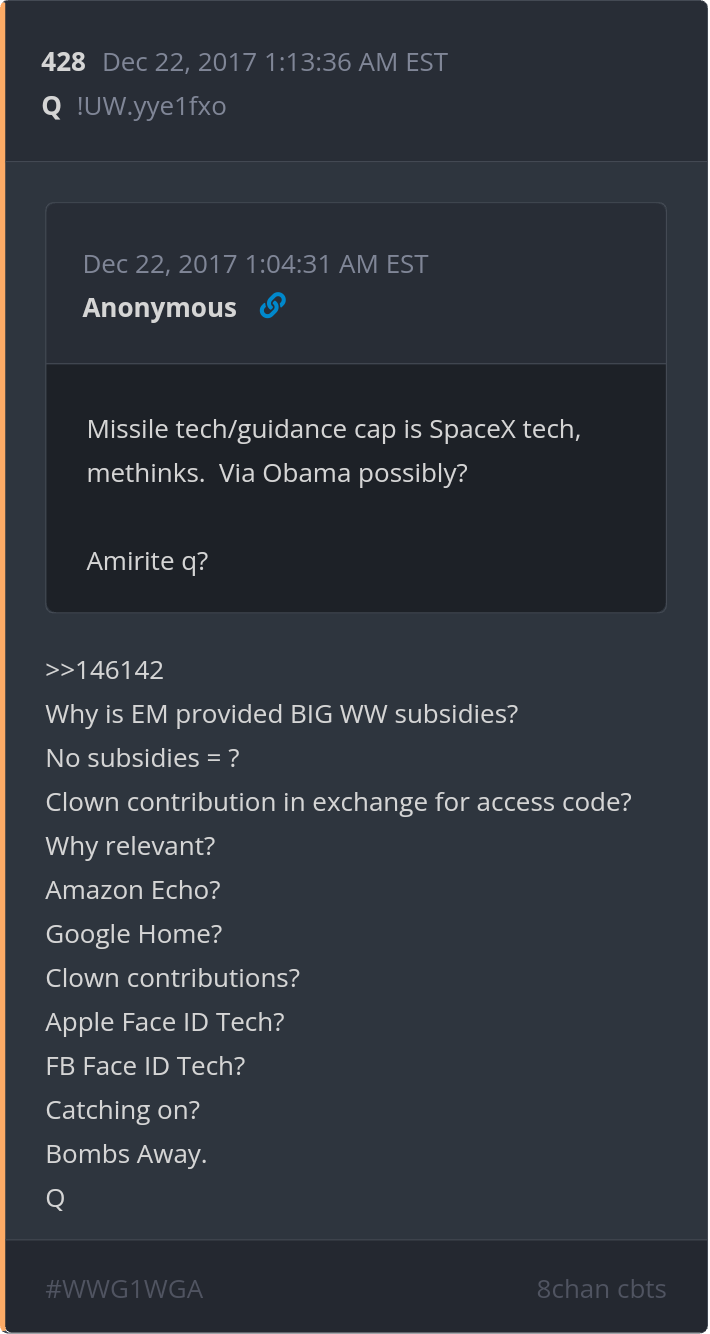 Disclaimer: this post and the subject matter and contents thereof - text, media, or otherwise - do not necessarily reflect the views of the 8kun administration.