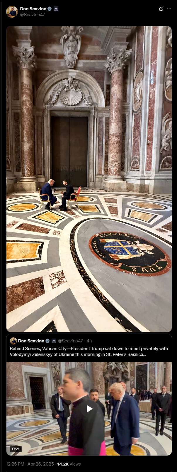 >>22955269 Trump and Zelenskyy meeting St. Peter's Basilica for roughly 15 minutes