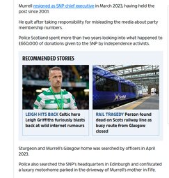 Police also searched the SNP’s headquarters in Edinburgh and confiscated a luxury motorhome parked in the driveway of Murrell’s mother in Fife.