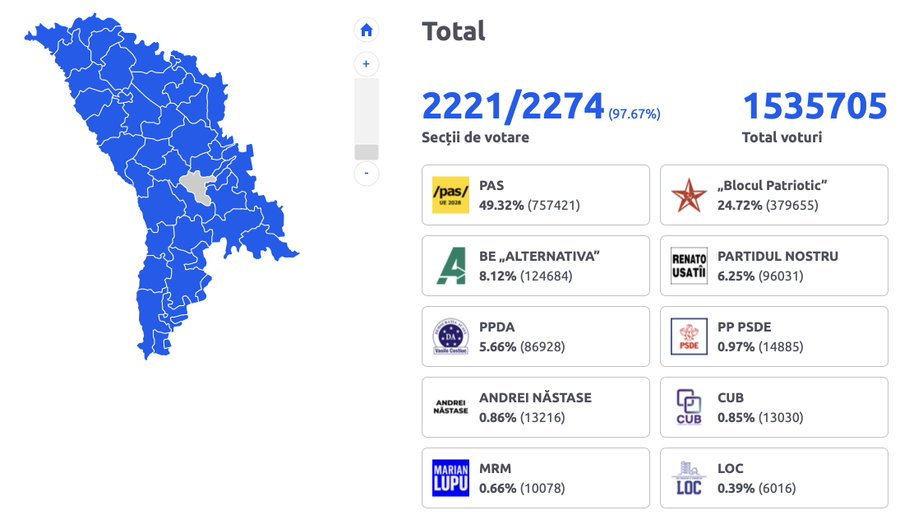 BREAKING NEWS: Maia Sandu secures an absolute majority in Moldova: PAS wins 51 out of 101 seats with 97% of votes counted, consolidating the path toward the EU against pro-Russian opposition
