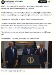 >>23640462 RFK Jr.: Some 40-70% of mothers who have children with autism believe that their child was injured by a vaccine