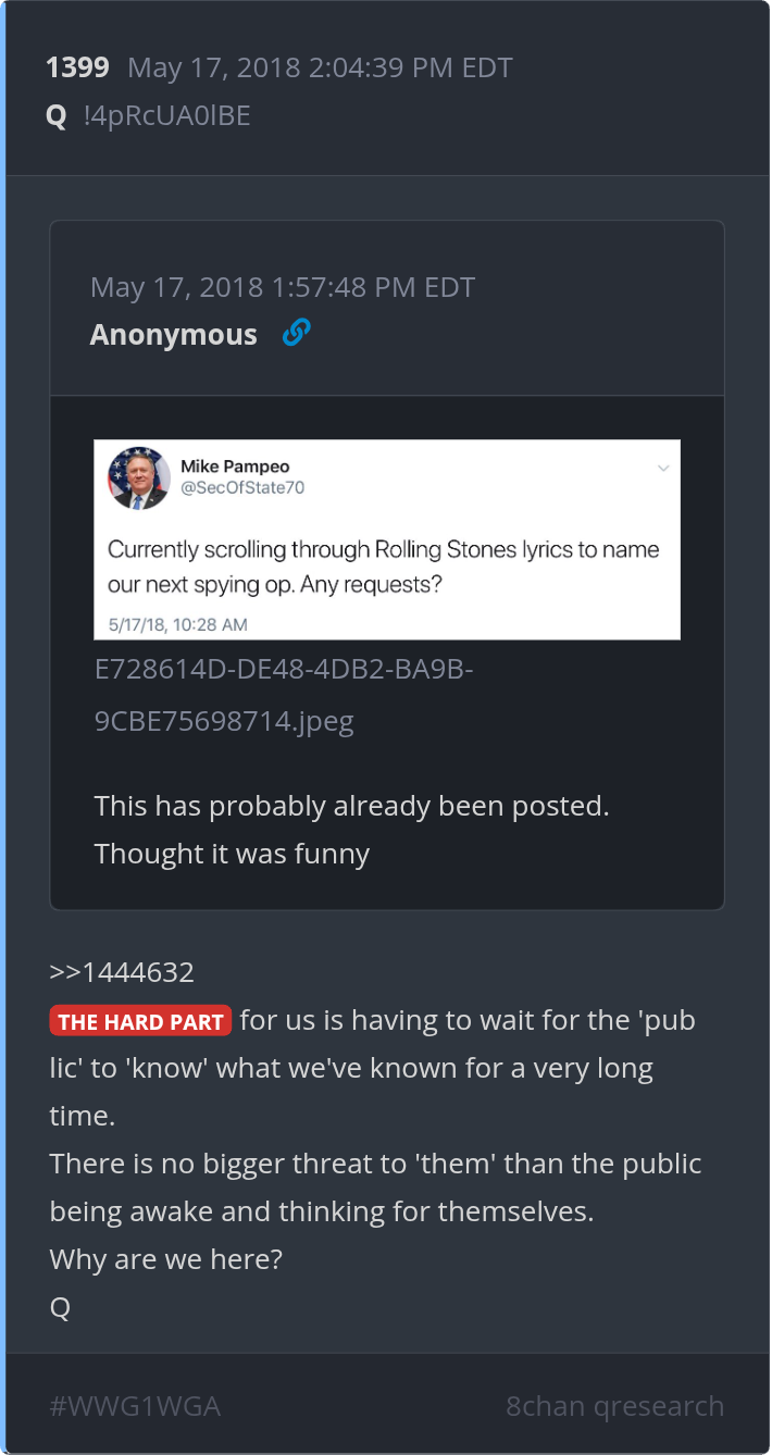 * Q Posts Archive, Searchable, interactive with user-explanations: qanon.pub qanon.app