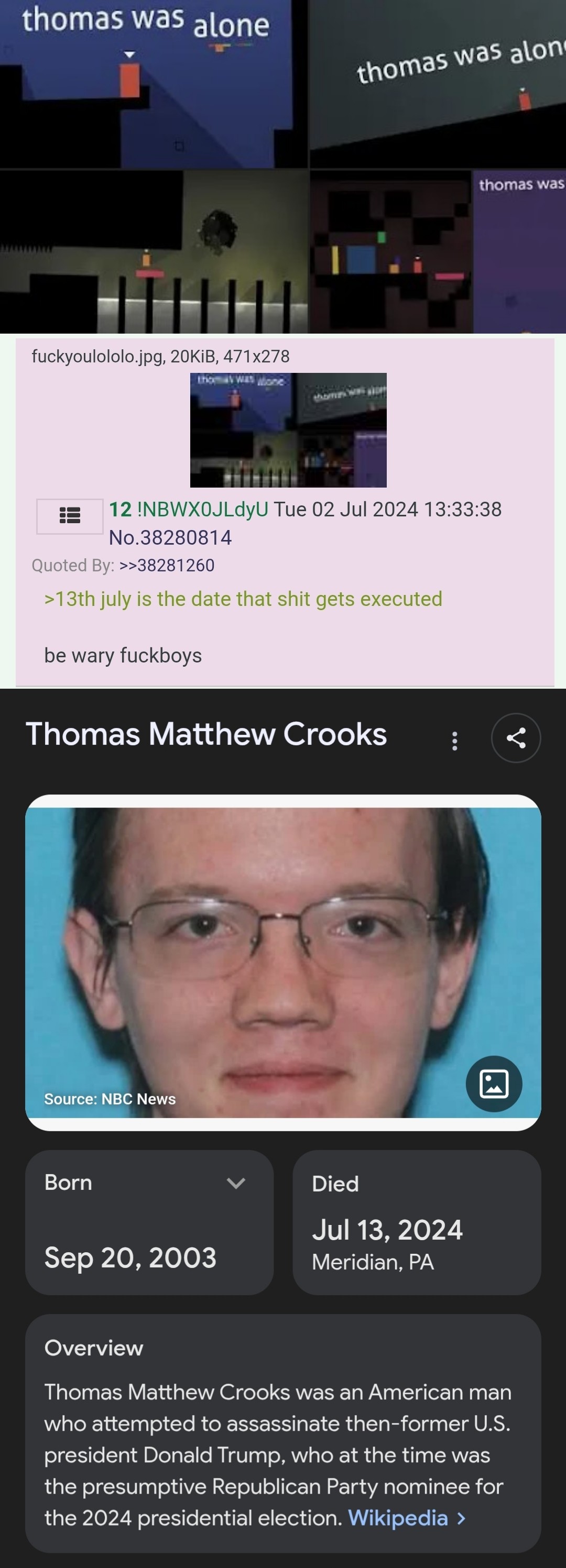 Disclaimer: this post and the subject matter and contents thereof - text, media, or otherwise - do not necessarily reflect the views of the 8kun administration.