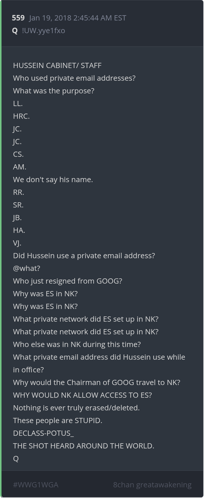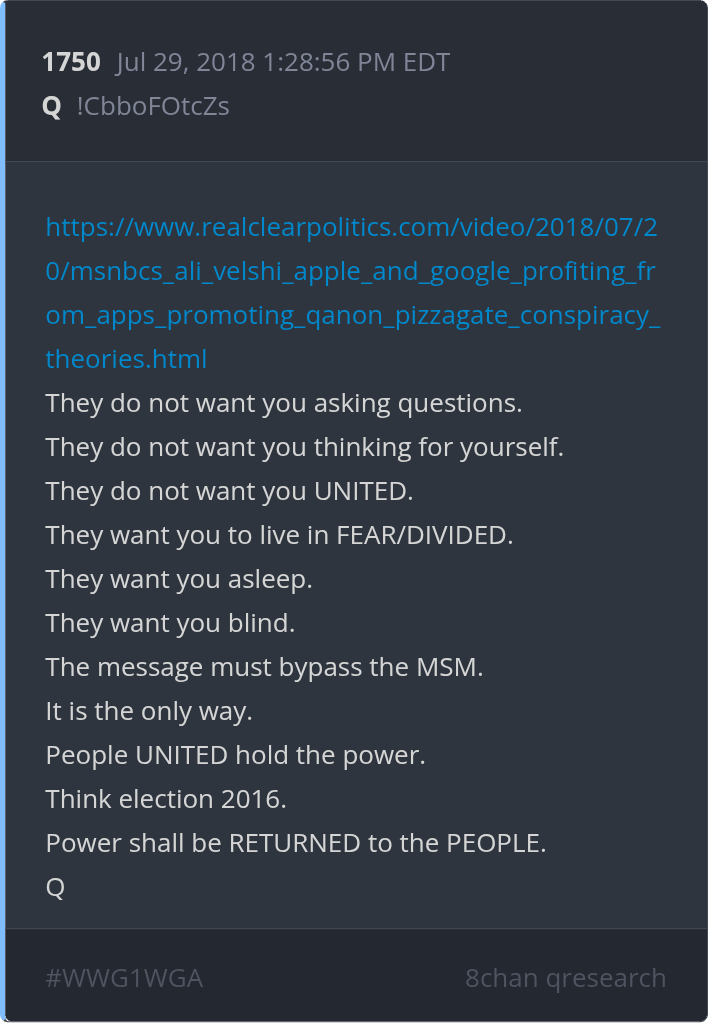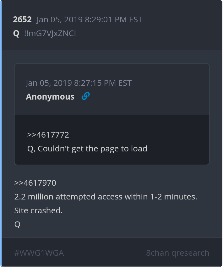 Qresear.ch/q-posts, Qanon.pub, Qalerts.pub, OperationQ.pub, Qposts.online, 8kun.top/qresearch, Qalerts.app, Qalerts.net, douknowq.com/134295/Q-Anon-Pub.htm8ku