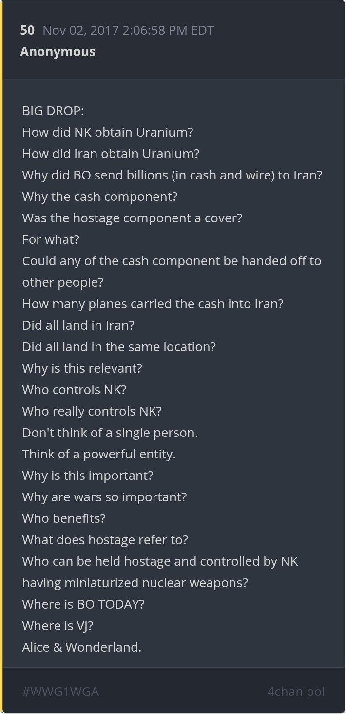 I like the OG Q he said we had all we need and some retard took over after that with new trips but no verification like the times before