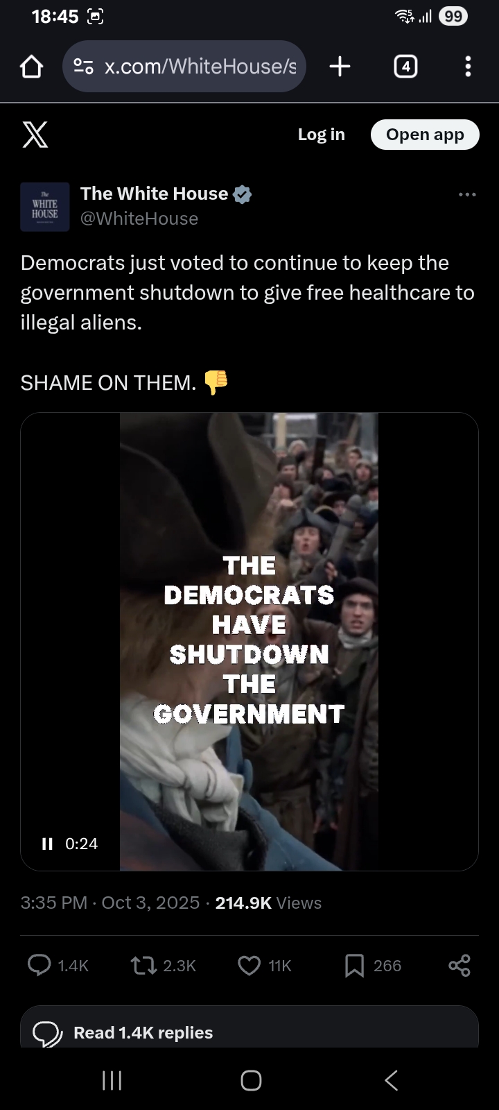 >>23689972 SHAME ON THEM 👎 Democrats just voted for their illegals and to keep the government shutdown