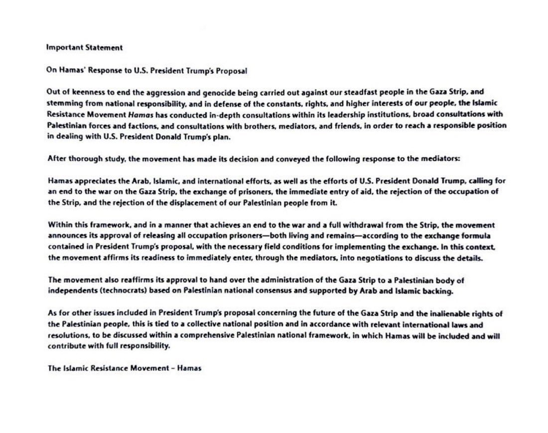 >>23690046, >>23690193 🚨 🇺🇸 🇵🇸 BREAKING: TRUMP’S DEAL ACCEPTED BY HAMAS