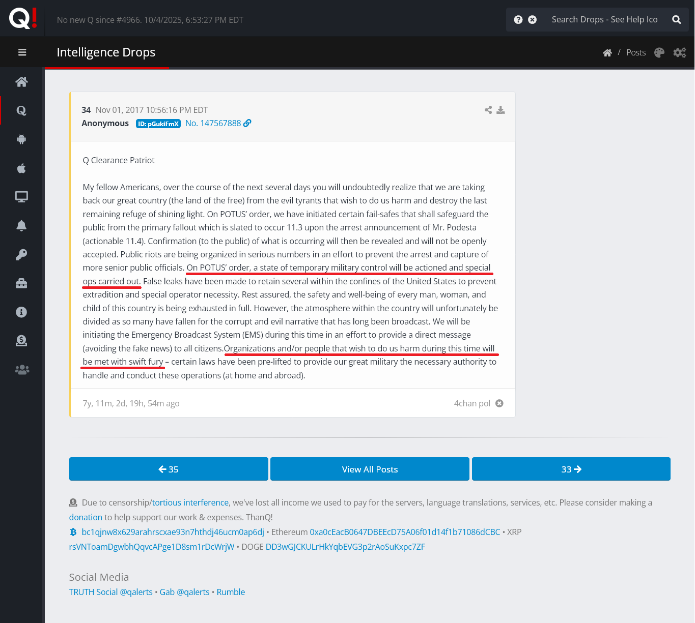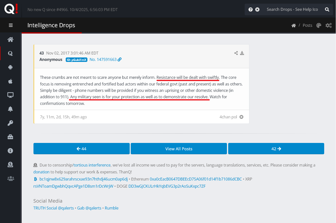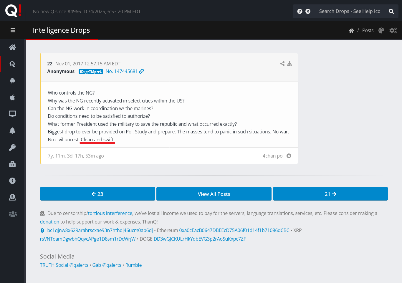 >>23692374 Today in Q Post History we have 17 Deltas - October 04