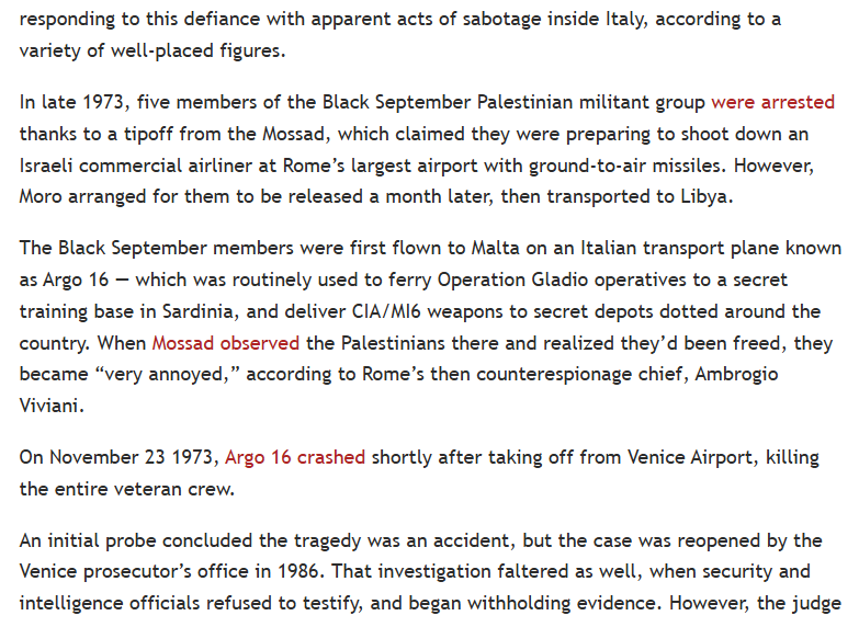 For some of Italy’s most knowledgeable sources, the crimes bore strong similarities to those of Operation Gladio, a covert effort which saw the CIA, MI6 and NATO train and direct a shadow army of fascist paramilitary units across Europe that carried out false flag terror attacks, robberies, and assassinations aimed at neutralizing the socialist left.