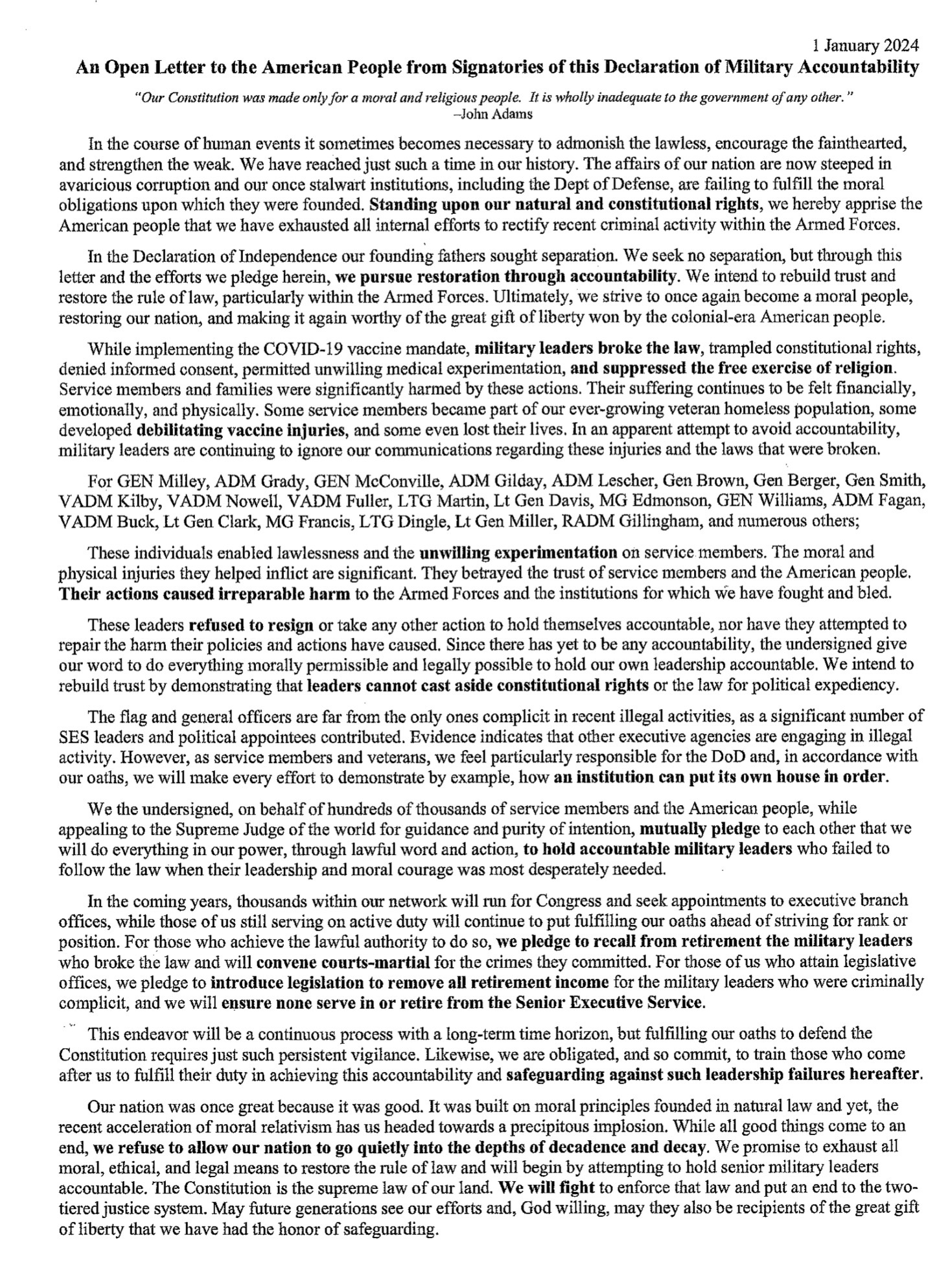 >I, _, do solemnly swear (or affirm) that I will support and defend the Constitution of the United States against all enemies, foreign and domestic; that I will bear true faith and allegiance to the same; and that I will obey the orders of the President of the United States and the orders of the officers appointed over me, according to regulations and the Uniform Code of Military Justice. So help me God. (Title 10, US Code; Act of 5 May 1960 replacing the wording first adopted in 1789, with amendment effective 5 October 1962).