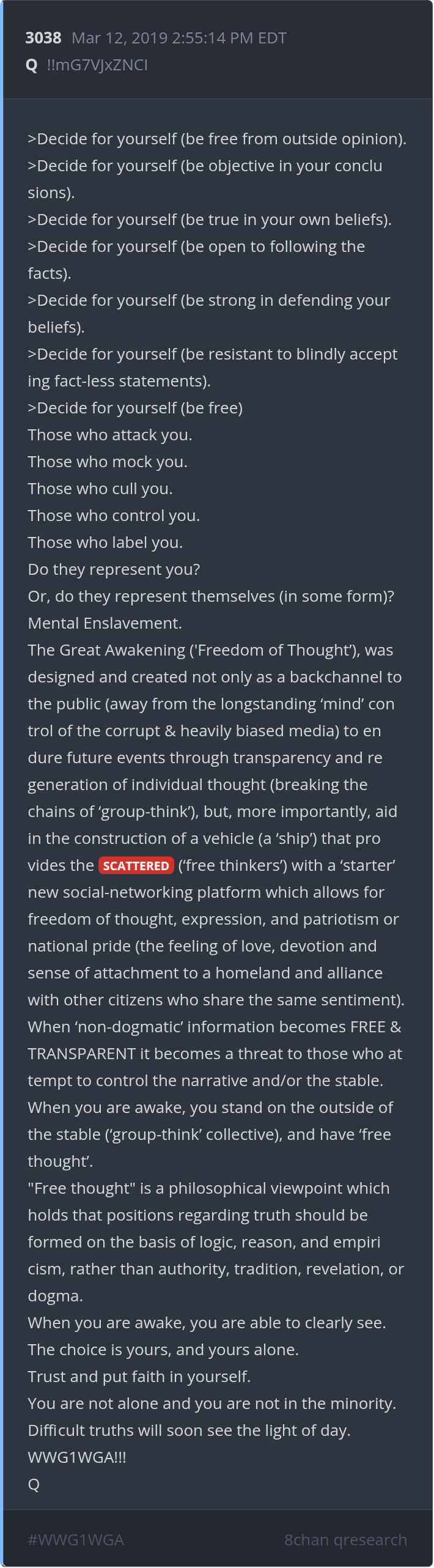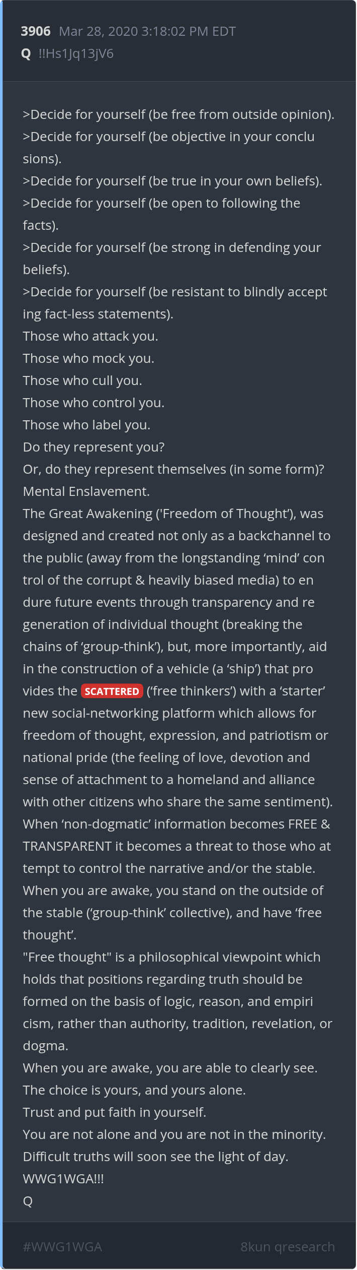 VINCIT OMNIA VERITAS | SEMPER FIDELIS | WWG1WGA | QRESEARCH