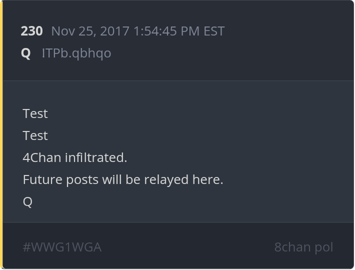 Qresear.ch/q-posts, Qanon.pub, Qalerts.pub, OperationQ.pub, Qposts.online, 8kun.top/qresearch, Qalerts.app, Qalerts.net, douknowq.com/134295/Q-Anon-Pub.htm8ku