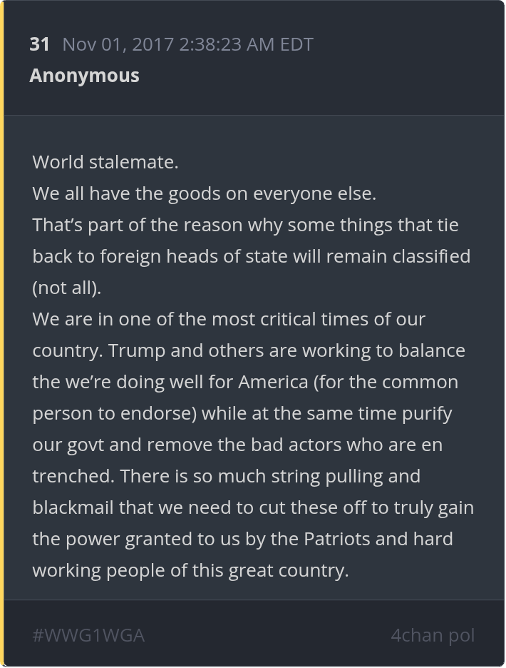 * Q Posts Archive, Searchable, interactive with user-explanations: qanon.pub qanon.app