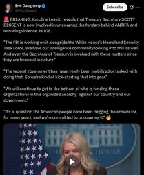 >>23700606 Leavitt: The financial backing of these groups, particularly Antifa, is certainly something the administration is looking into aggressively