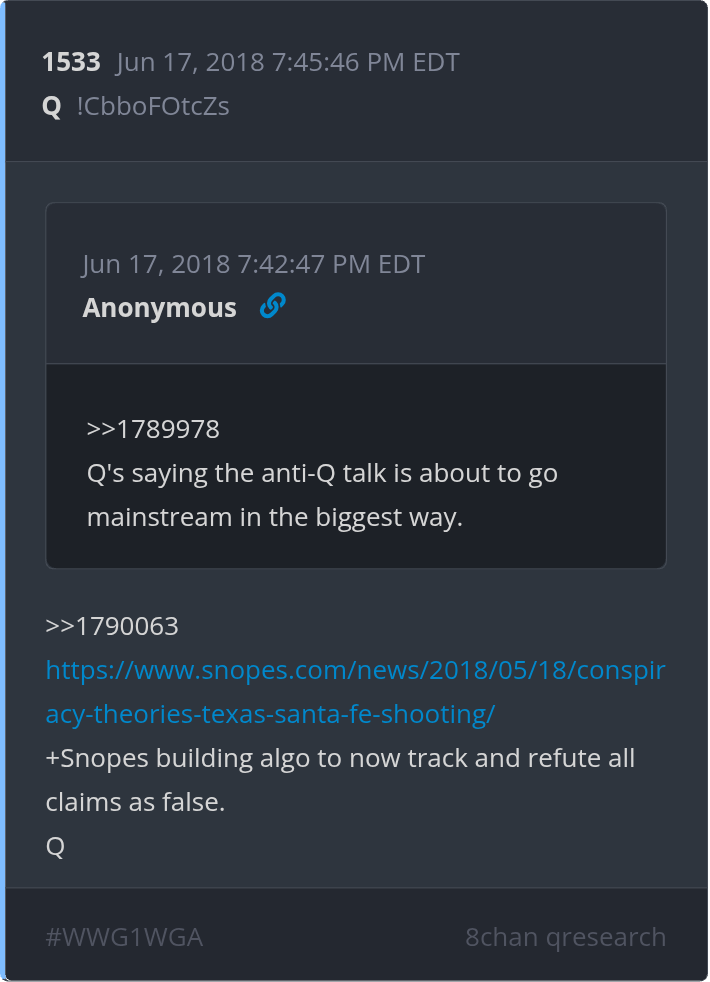 * Q Posts Archive, Searchable, interactive with user-explanations: qanon.pub qanon.app