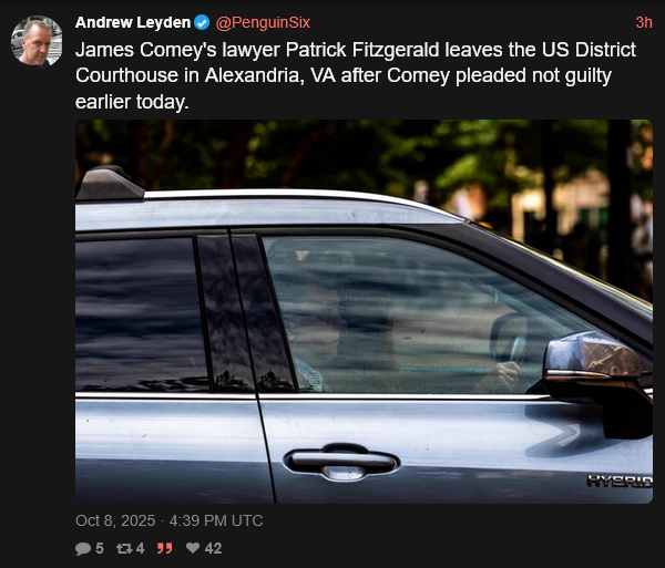 >>23710339, >>23710413 James Comey Will Go To Trial In January As He Pleads Not Guilty