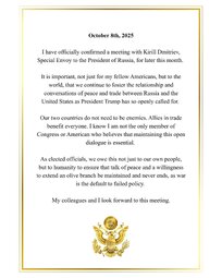 I have officially confirmed a meeting with Kirill Dmitriev, Special Envoy to the President of Russia, for later this month.