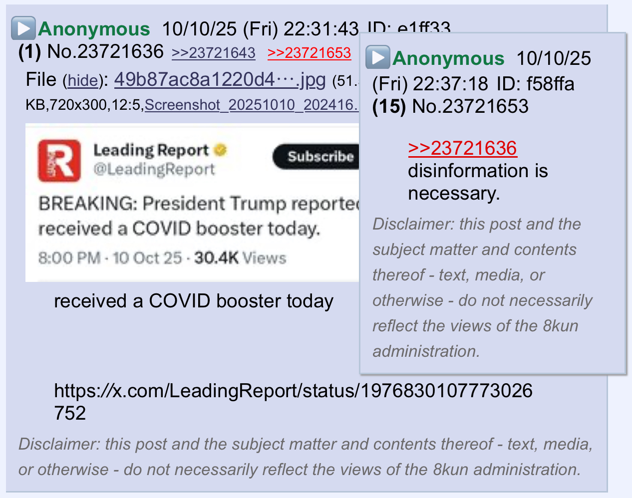 Disclaimer: this post and the subject matter and contents thereof - text, media, or otherwise - do not necessarily reflect the views of the 8kun administration.