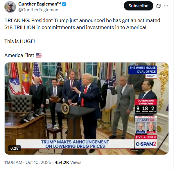 >>23720246, >>23720260, >>23720641 WATCH LIVE: President Trump Makes an Announcement - 10/10/25
