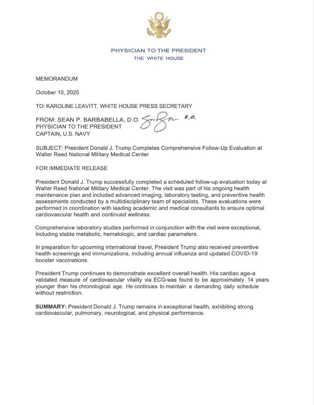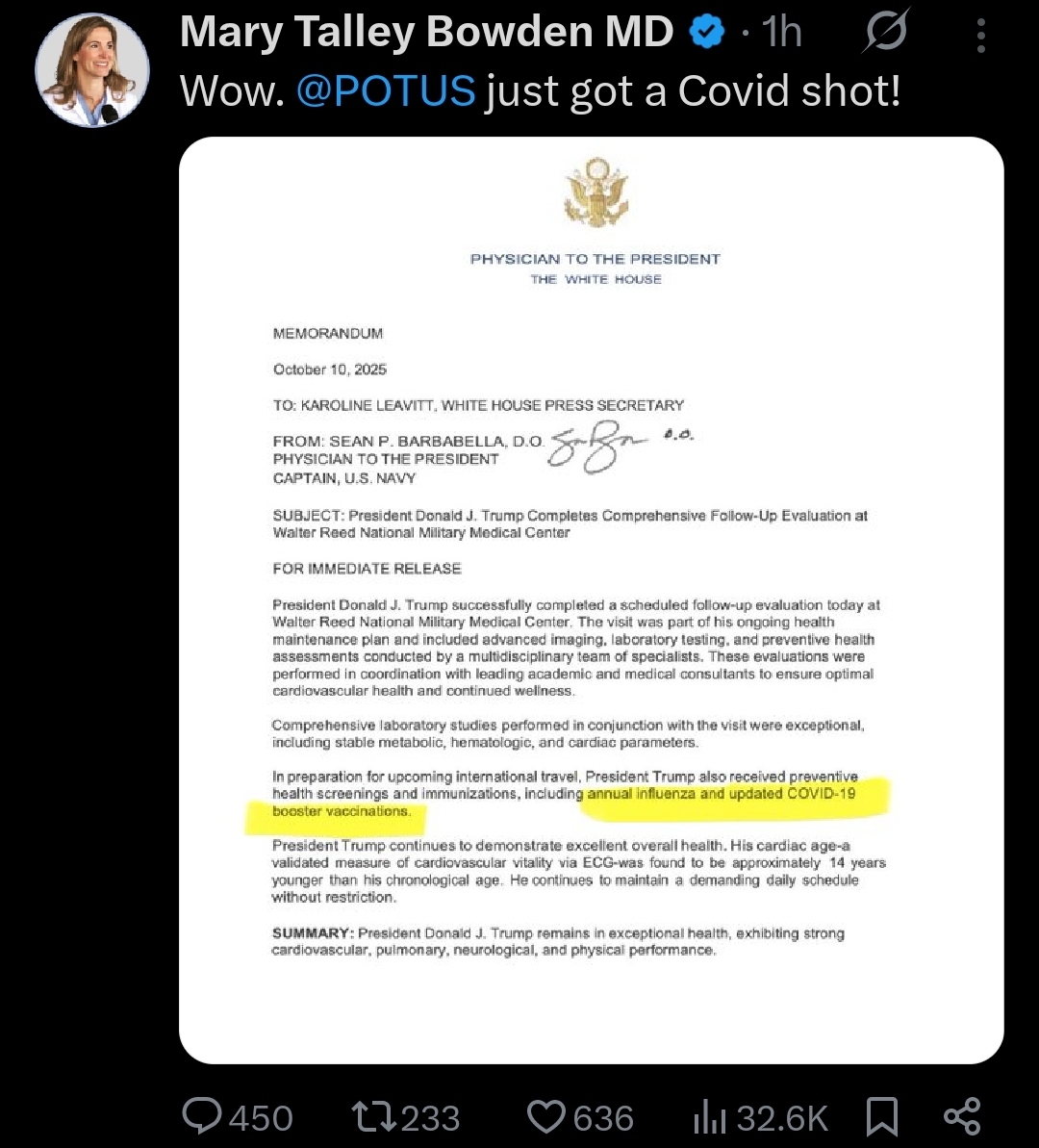 >>23722550 ICYMI: President Trump is in "EXCEPTIONAL" health after today's physical - his cardiac age is 14 YEARS YOUNGER than his actual age