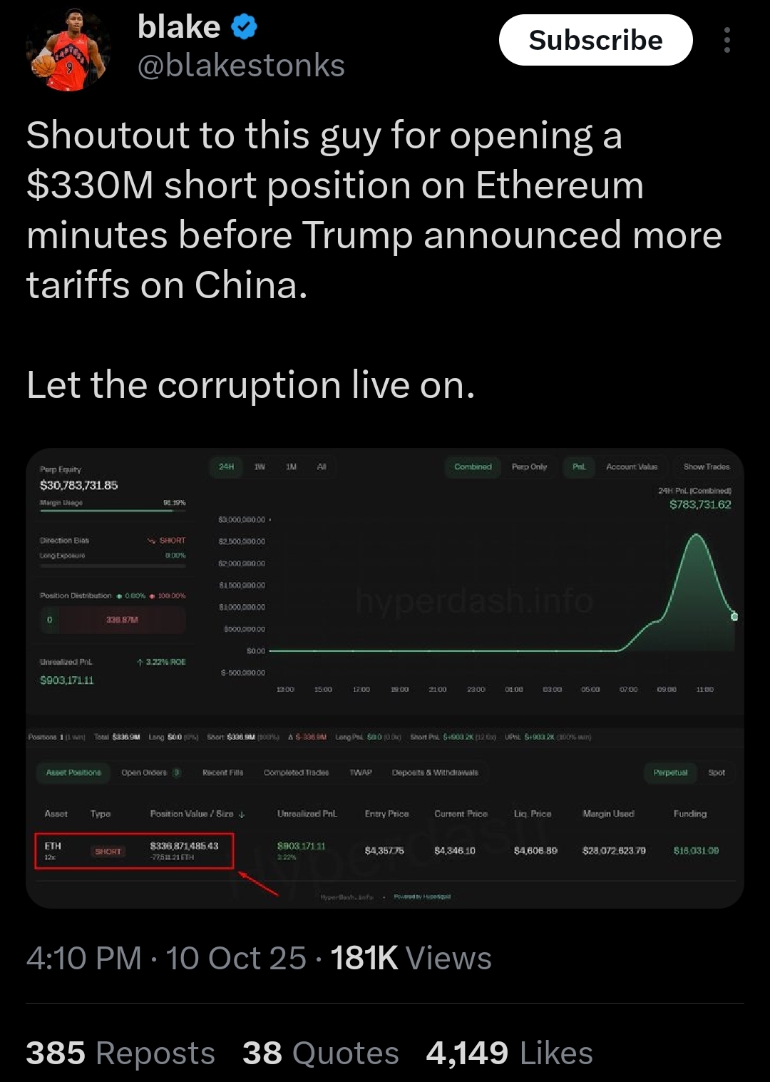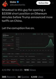 >>23722552, >>23722566 SOMEONE JUST OPENED A #BITCOIN SHORT 30 MINS BEFORE TRUMP'S TARIFF ANNOUNCEMENT AND JUST CLOSED WITH $88,000,000 PROFIT
