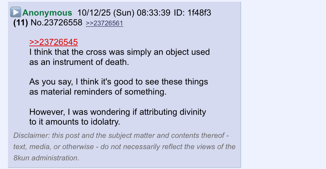 Disclaimer: this post and the subject matter and contents thereof - text, media, or otherwise - do not necessarily reflect the views of the 8kun administration.