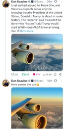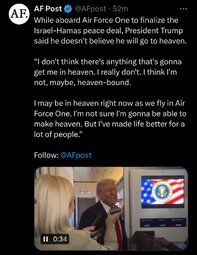 >>23728326, >>23728451 President Trump [Air Force One]: The war's over. The war is over, okay? You understand that?