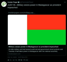 >>23737705, >>23738013 Military seizes power in Madagascar as president impeached