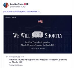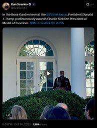 >>23738863 @Scavino47 - President Donald J. Trump posthumously awards Charlie Kirk the Presidential Medal of Freedom.