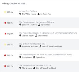 >>23740960, >>23740967, >>23740972, >>23740975, >>23740977 1:00 PM EDT The President greets the President of Ukraine/Tomahawks off the table