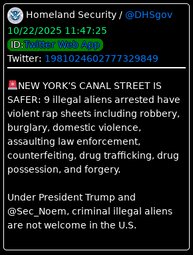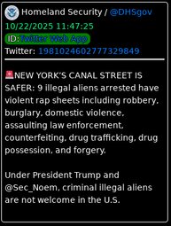 >>23756287 @DHSgov NEW YORK’S CANAL STREET IS SAFER: 9 illegal aliens arrested have violent rap sheets including robbery, burglary, domestic violence, assaulting law enforcement, counterfeiting, drug trafficking, drug possession, and forgery.