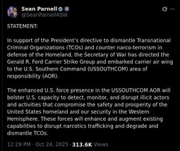 >>23764463, >>23764786, >>23764799 Trump War Dept strikes drug boat, killing 6 alleged narco terrorists