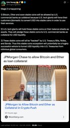 1) Bitcoin, Ether and soon stable coins will be allowed by U.S. commercial banks as collateral because U.S. tech giants will force their customers (domestic to convert USD into stable coins in order to use their services.