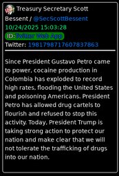 >>23767533 Pres. Trump - No declaration of war, we are going to kill them if they bring drugs into our country